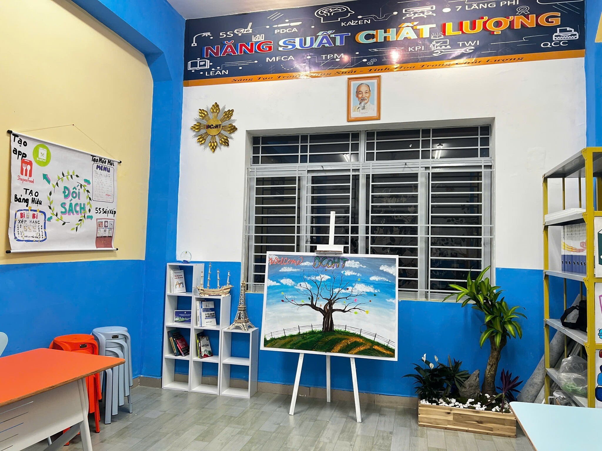 Tại đây, phòng được trang bị các mô hình, tài liệu và thiết bị thực hành phục vụ hoạt động nghiên cứu, triển khai các công cụ cải tiến năng suất – chất lượng. Đặc biệt, nhiều mô hình và vật liệu sử dụng trong không gian đều được tái chế, thân thiện với môi trường, thể hiện tinh thần tiết kiệm và phát triển bền vững.