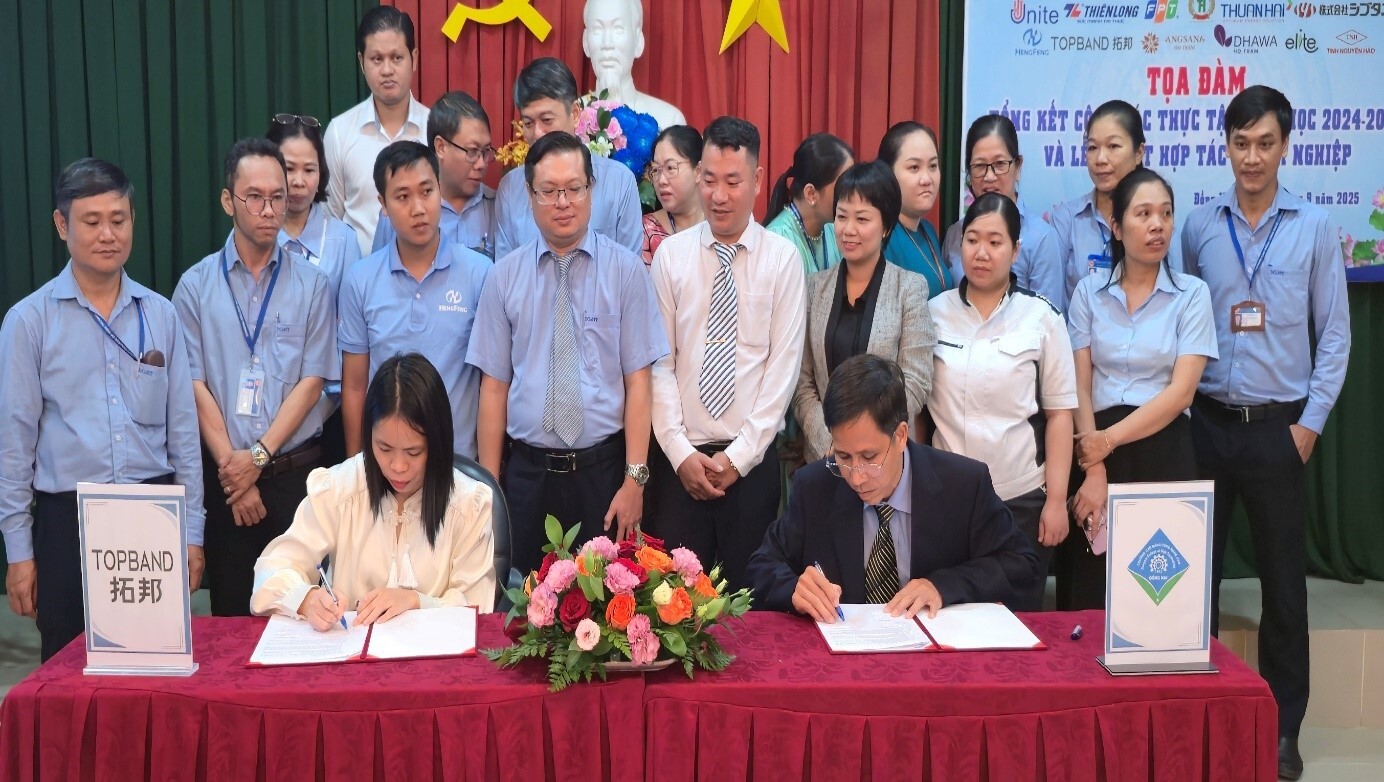 Nhằm tổng kết, đánh giá kết quả công tác thực tập của học sinh-sinh viên (HSSV) năm học 2024-2025, đồng thời thắt chặt hơn mối quan hệ hợp tác giữa Nhà trường và Doanh nghiệp. Chiều ngày 25/9/2025, Trường Cao đẳng Công nghệ cao Đồng Nai (Trường) đã tổ chức thành công buổi Tọa đàm tổng kết công tác thực tập năm học 2024–2025 và Lễ ký kết hợp tác giữa Trường và Doanh nghiệp. Tham dự chương trình có ông Đặng Đình Anh – Phó Trưởng phòng GDNN - Sở Giáo dục và Đào tạo, Ban Giám hiệu Nhà trường, đại diện 18 doanh nghiệp, cùng các thầy cô lãnh đạo Phòng, Khoa, Bộ môn, các em HSSV thực tập tiêu biểu đại diện cho 1.473 HSSV (trong đó trung cấp 1200 học sinh, cao đẳng 273 sinh viên) tham gia thực tập tại 340 doanh nghiệp trong năm học 2024-2025.